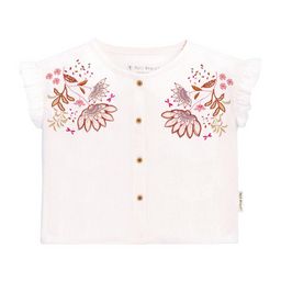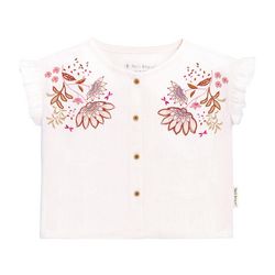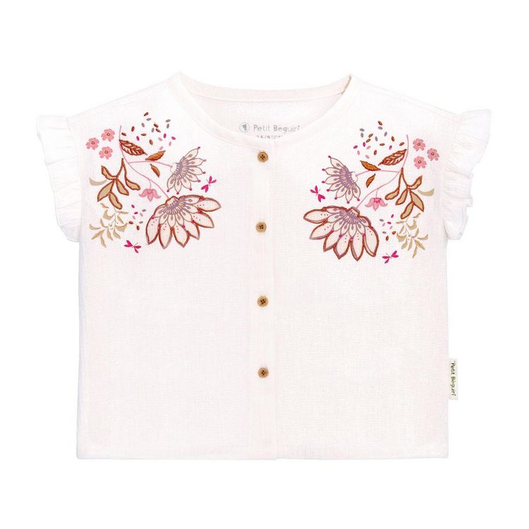 Tous les détails romantiques de cette petite blouse écrue vous feront craquer : volants, broderies florales, coton gaufré... un style qu'on adore associer à un jean. Une ouverture complète sur l'avant