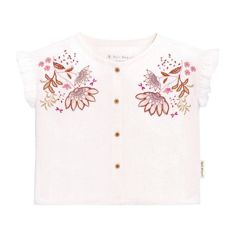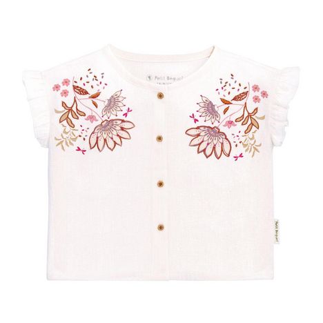 En savoir +Tous les détails romantiques de cette petite blouse écrue vous feront craquer : volants, broderies florales, coton gaufré... un style qu'on adore associer à un jean. Une ouverture complète sur l'avant