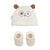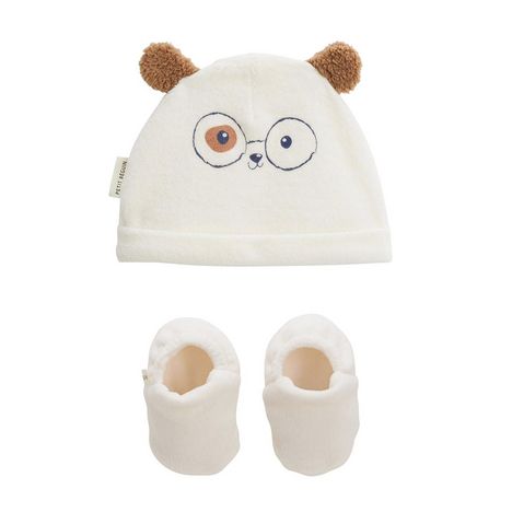 Impossible de résister à cet adorable ensemble composé d'un bonnet et de ses chaussons assortis ! Avec sa tête de petit chien et ses oreilles trop mignonnes, le bonnet garde bébé bien au chaud tout en ajoutant une touche ludique à son look. Les chaussons élastiques assurent un maintien parfait pour