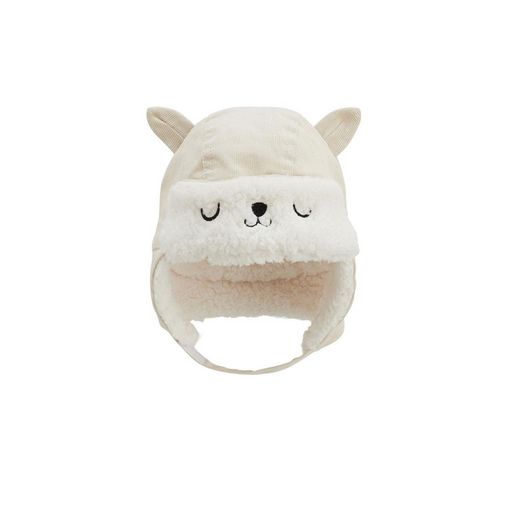 L'accessoire indispensable des journées fraiches ! Protégez bébé du froid en toutes circonstances, et ce, toujours avec du style. Avec son sherpa à l'intérieur, sa matière en velours côtelé et son petit visage brodé, la chapka sera la pièce phare de l'hiver.Produit labellisé STANDARD 100 by OEKO-TEX