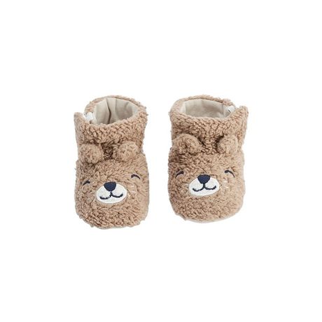 Des petits pieds bien au chaud ! Ces chaussons marron en sherpa enveloppent bébé de douceur. Faciles à enfiler grâce à leur pressions, ils tiennent parfaitement sans serrer. Parfait pour garder les pieds de bébé au chaud On craque pour cette petite tête Fermeture avec pressions pour ne pas perdre le