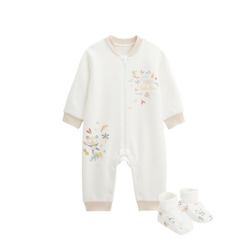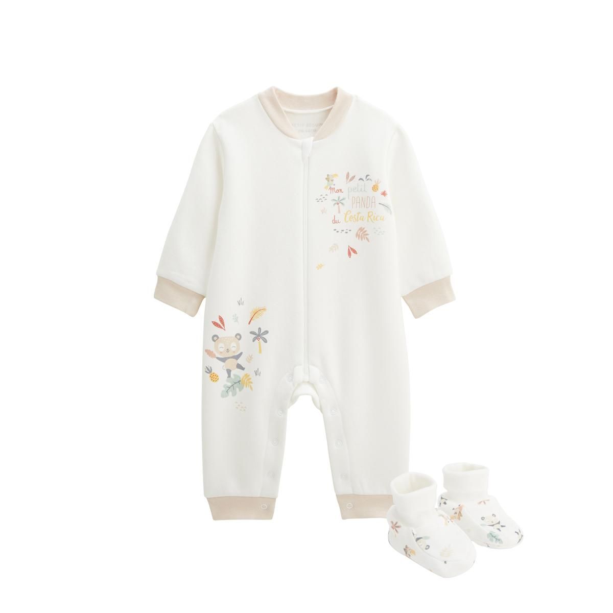 Un ensemble tellement chou pour bébé. Avec sa petite combinaison en molleton chaud et ses chaussons douillets, c'est idéal pour garder votre nouveau-né au chaud dès la sortie de maternité. Cette jolie combinaison toute douce n'a qu'à être enfilée au dessus d'un body et le tour est joué !Une nouvelle forme à croquer !Contient du coton issu de l'agriculture biologique et du polyester - voir compositionProduit labellisé STANDARD 100 by OEKO-TEX ® (BJ020 189402 TESTEX)Photos non contractuelles : les visuels sont fournis à titre illustratif. Les accessoires visibles ne sont pas inclus, l'offre concerne uniquement les pièces mentionnées dans le titre.