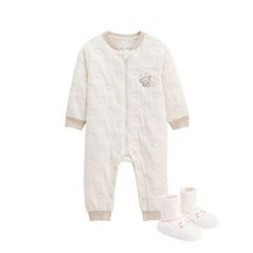 Une combinaison toute douce en molleton chaud, parfaite pour garder bébé bien au chaud. Les chaussons assortis protègent ses petits pieds avec douceur. Un ensemble confortable et pratique pour les journées fraîches.Rien de mieux qu'une combinaison avec les chaussons assortis.Contient du coton issu d