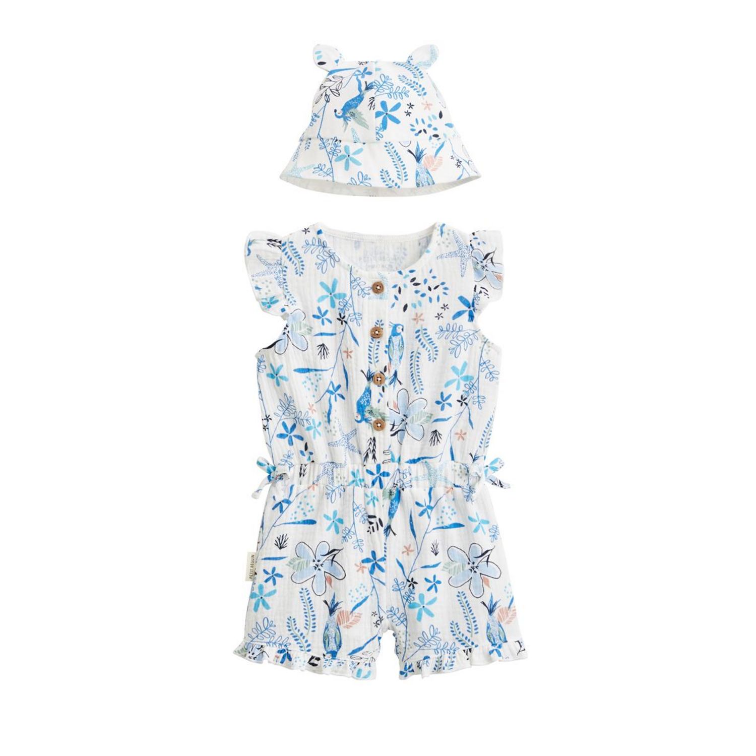 Combishort bébé + chapeau en gaze de coton Océan d'amour