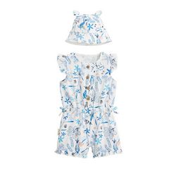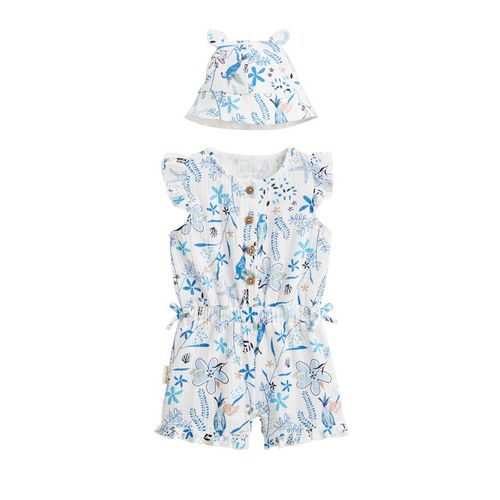 Souple et douce, cette combishort en gaze de coton est idéale pour flâner tout au long de la journée. Avec son petit bob assorti, c'est l'ensemble parfait pour les journées chaudes et ensoleillées ! Sans oublier, les petites épaulettes et les petits nœuds qui apportent une touche de charme à la tenu