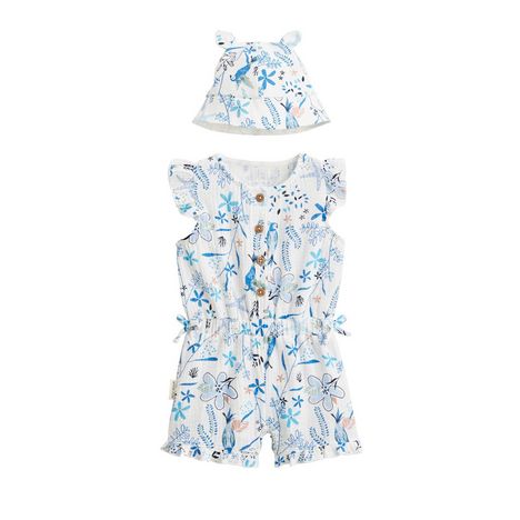 En savoir +Souple et douce, cette combishort en gaze de coton est idéale pour flâner tout au long de la journée. Avec son petit bob assorti, c'est l'ensemble parfait pour les journées chaudes et ensoleillées ! Sans oublier, les petites épaulettes et les petits nœuds qui apportent une touche de charme à la tenue.Une matière effet crêpe trop chouette grâce à la gaze de cotonUne ouverture pressionnée sur l'avant et à l'entrejambeDes petits détails trop craquants : volants sur les épaules et petits nœuds sur les hanchesPhotos non contractuelles : les visuels sont fournis à titre illustratif. Les accessoires visibles ne sont pas inclus, l'offre concerne uniquement les pièces mentionnées dans le titre.