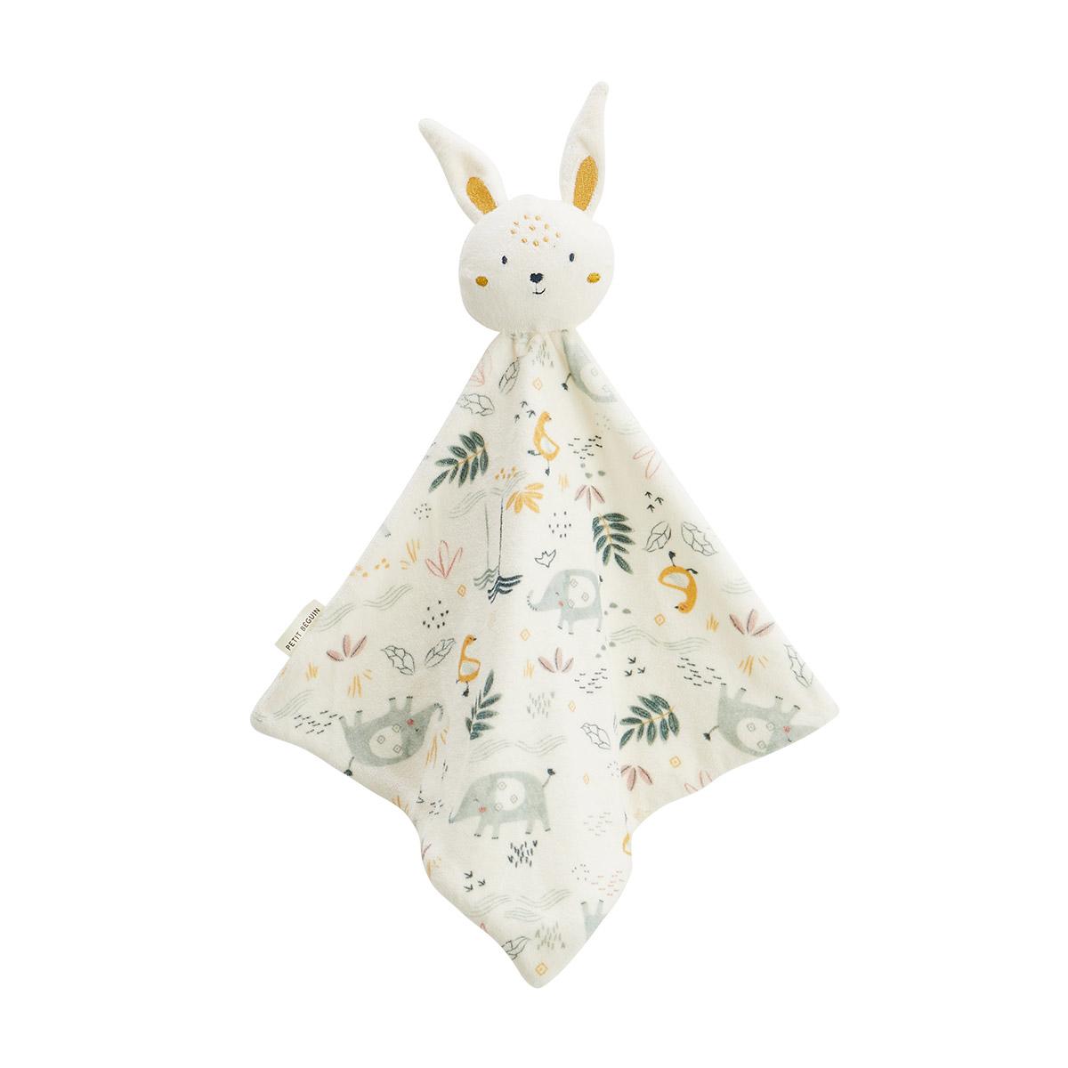 Avec sa petite tête de lapin et son toucher velours ultra moelleux, ce doudou deviendra vite le compagnon préféré de bébé. On craque totalement !Velours tout doux, parfait pour les câlinsUn lapin trop mignonPhotos non contractuelles : les visuels sont fournis à titre illustratif. Les accessoires vis