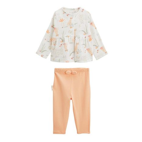 Cet adorable ensemble associe une blouse en coton gaufré écru et un legging pêche, pour envelopper bébé de tendresse et de confort. La blouse, délicatement texturée, est dotée d'une ouverture complète pour un habillage facilité, parfait pour les petits instants du quotidien.Blouse en coton gaufré hy