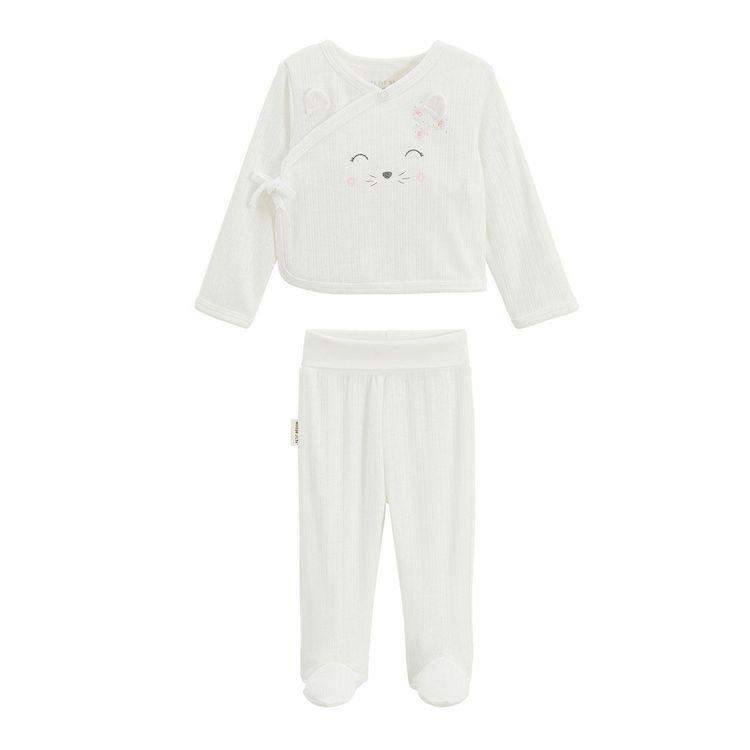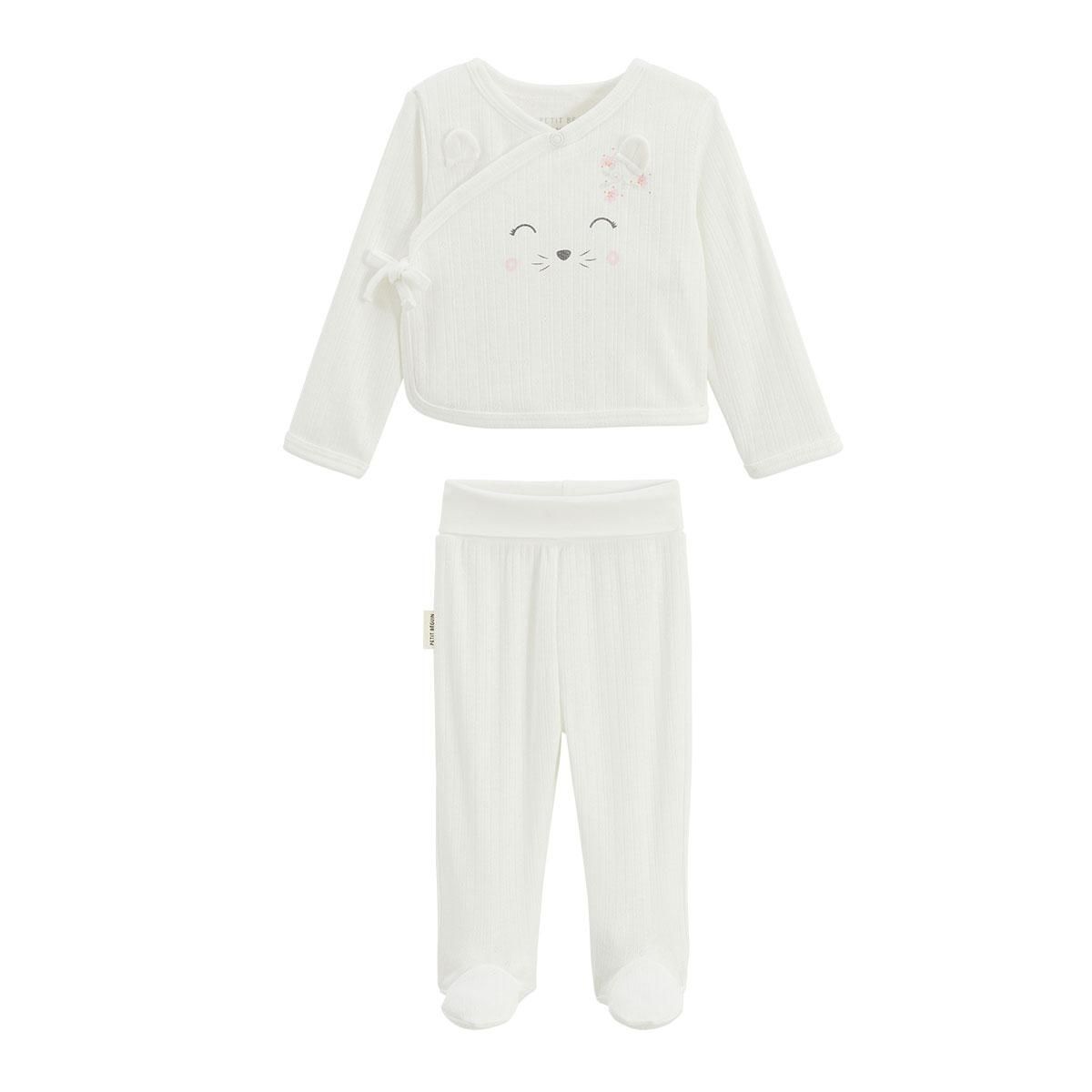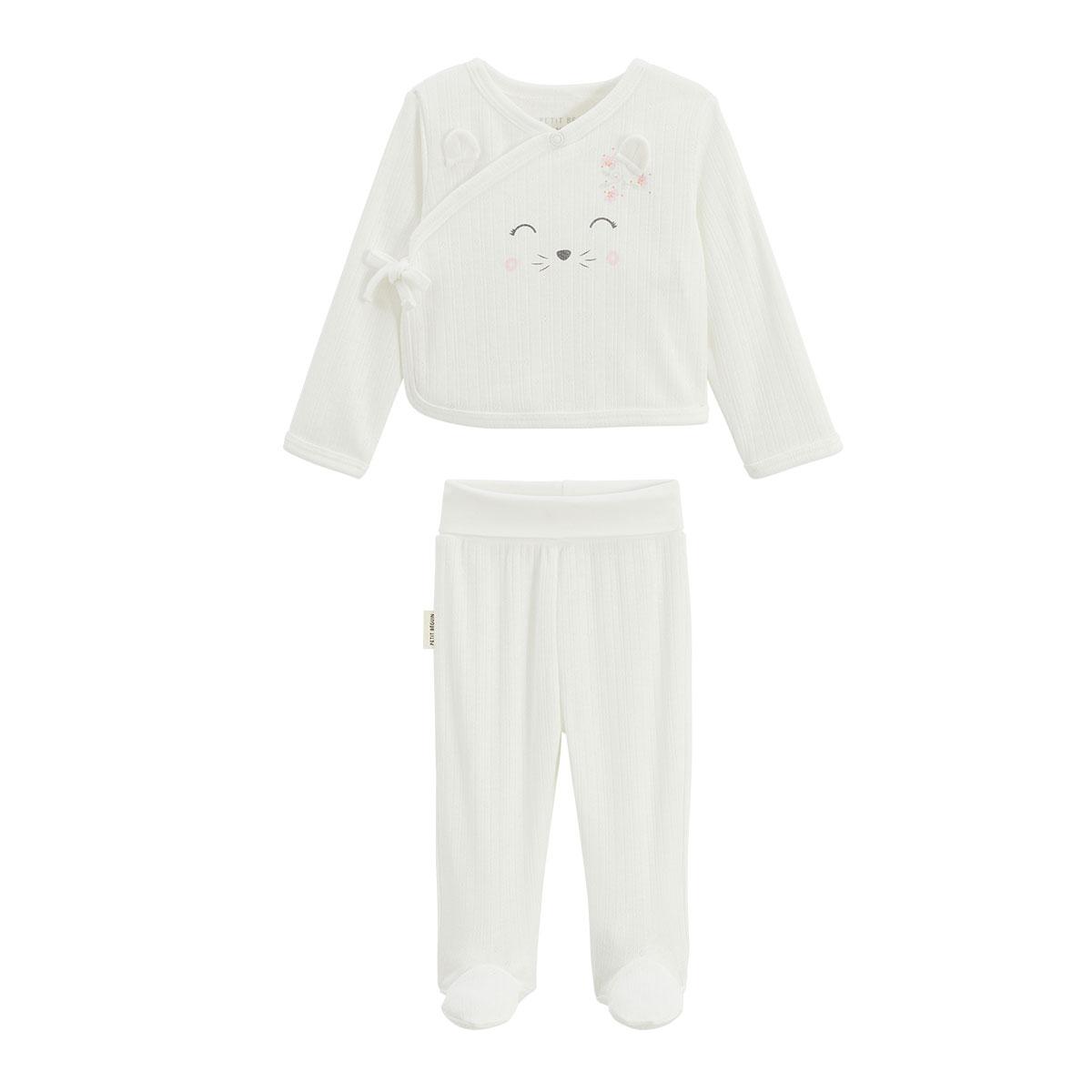 Ensemble bébé gilet et pantalon à pied en pointelle Badian