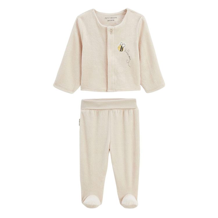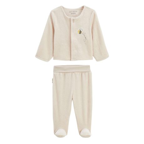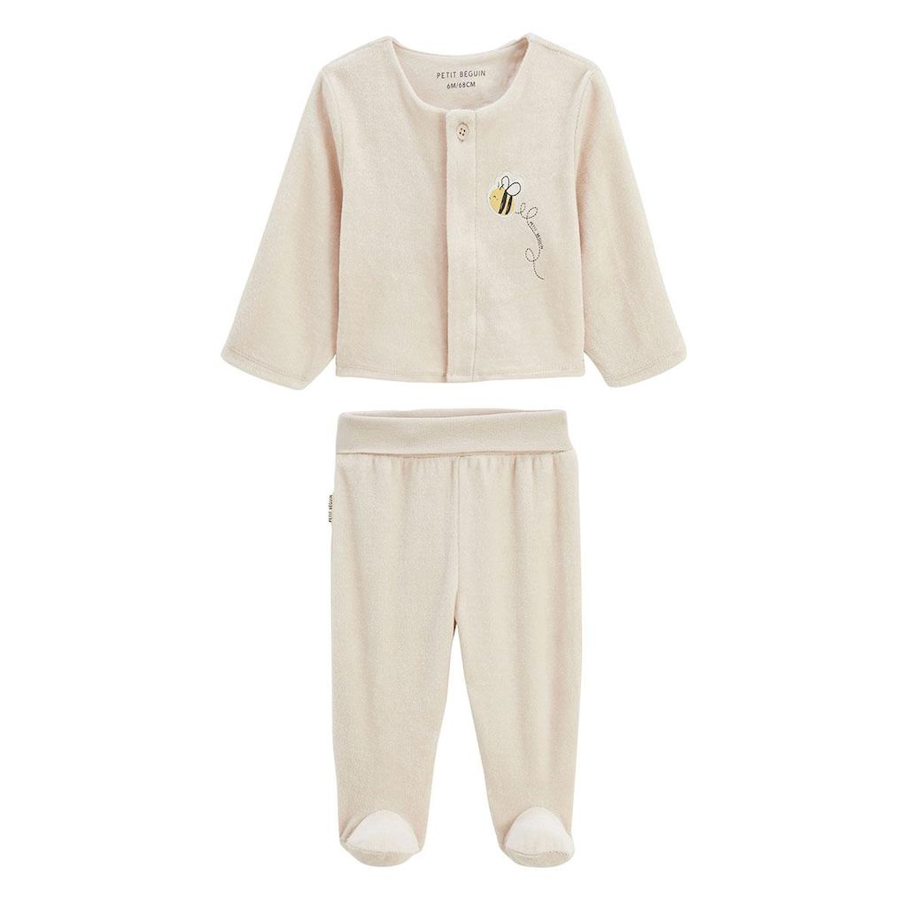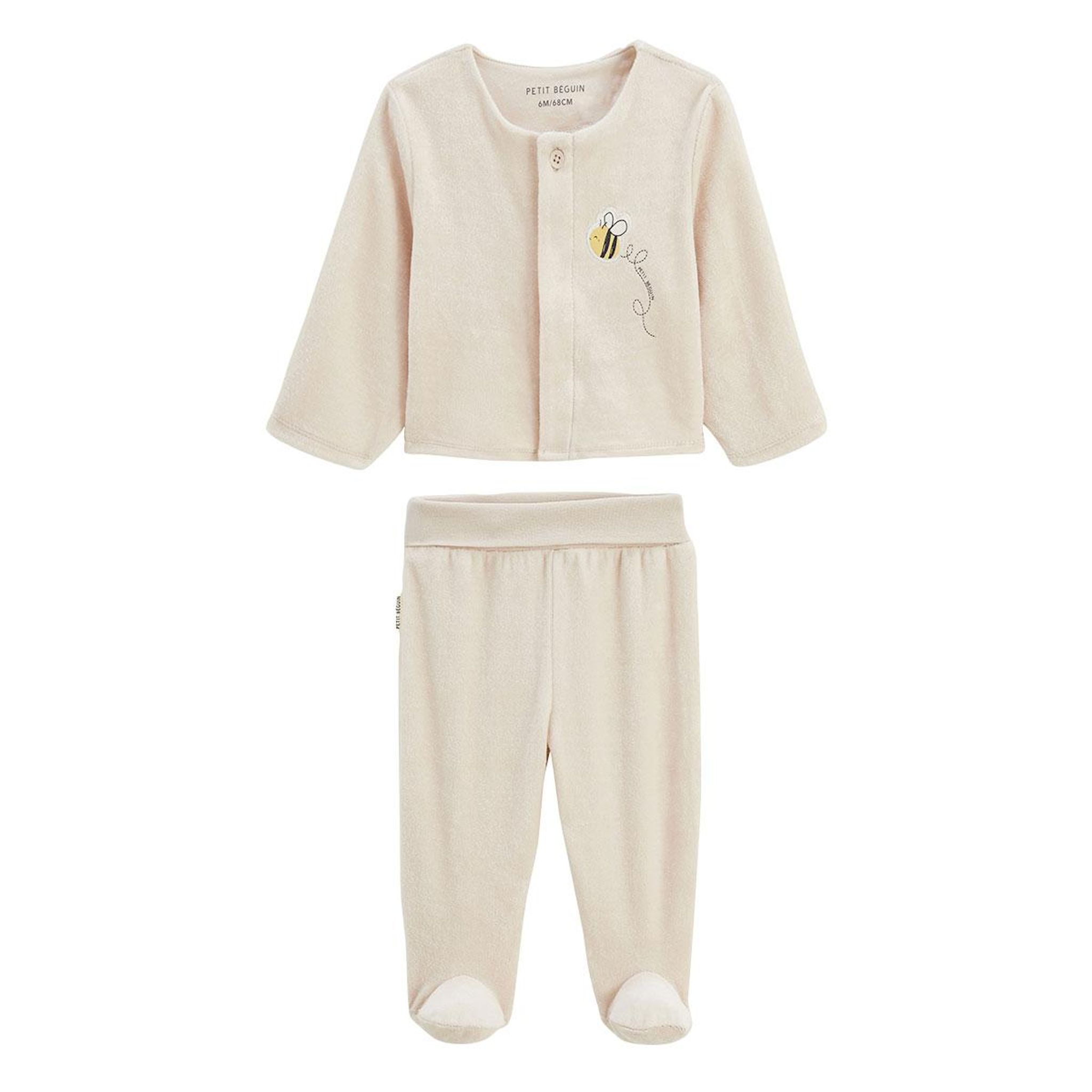 Un adorable ensemble tout doux pour les premiers instants cocooning. Le gilet s'ouvre facilement grâce à ses pressions et le pantalon avec pieds garde bébé bien couvert et confortable. En velours tout doux et avec sa petite abeille brodée, on ne peut que craquer. Petite abeille brodée trop mignonne