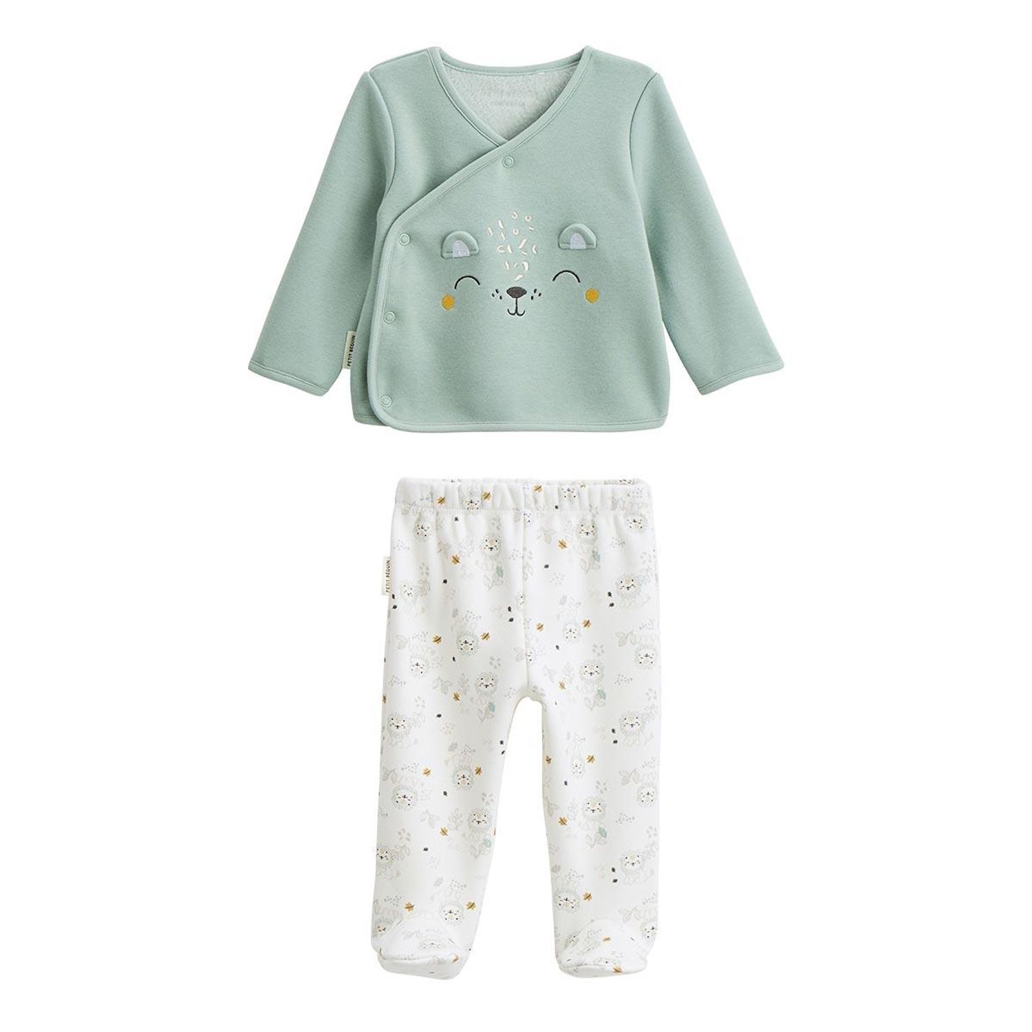 En molleton ultra chaud, cet ensemble réunit confort et douceur pour bébé. Le pantalon à pieds garde bien au chaud, tandis que le gilet se distingue par ses jolis détails brodés autour du visage de lion.Ouverture complète avec des pressions sur le devant du giletEn molleton tout doux et ultra chaudP
