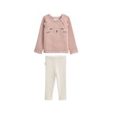Un pull rose délicat, et son visage brodé tout en douceur, associé à son legging écru bien chaud. Un duo parfait pour envelopper bébé de confort, tout en restant facile à porter au quotidien.Visage brodé pour un look trop mignonJeu de différentes maille, pour un ensemble tout douxTaille élastiquée p