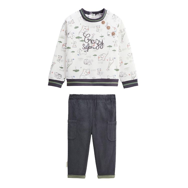 Ensemble bébé sweat-shirt en molleton et pantalon en velours Crazy Safari