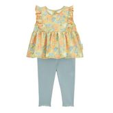 Voici le parfait combo ! Ce bel ensemble est constitué d'une blouse sans manches agrémentée de jolis feuillages et de volants trop mignons sur les épaules. On valide aussi le legging trop pratique en coton ! De jolis détails brodés sur les manches à volants Un legging en coton ultra confortable avec