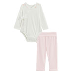 Un adorable ensemble pensé pour les tout-petits. Le body cache-cœur s'ouvre entièrement sur le devant pour faciliter l'habillage et éviter de passer par la tête, idéal dès la naissance. Le legging tout doux en pointelle accompagne bébé avec confort. Ouverture complète du body Ceinture au pantalon po