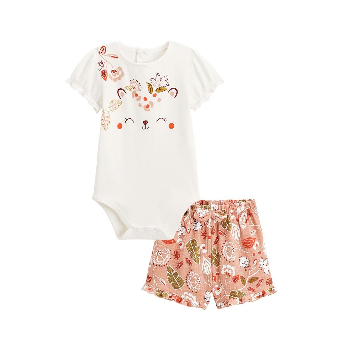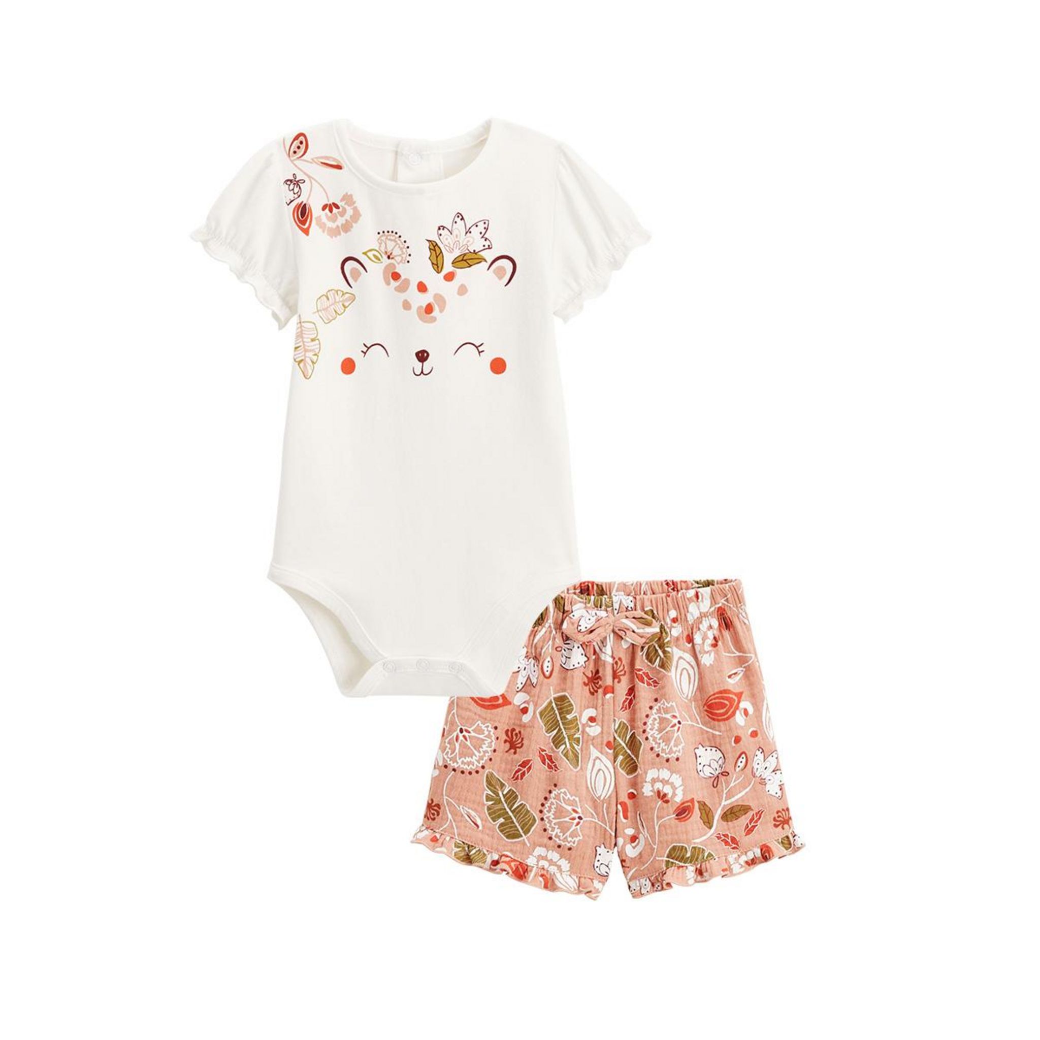 Apportez une touche de douceur et de fraicheur avec cet ensemble adorable ! Avec son body à manches ballons, le joli short en coton gaufré aux motifs floraux complète parfaitement le look.Col US sur le body pour faciliter le passage de la têteOuverture par pressions à l'entrejambe sur le bodyNouvel