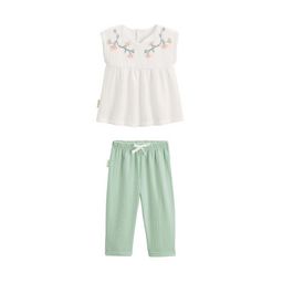 Adorable et tout doux, cet ensemble bébé est un vrai coup de cœur ! Avec sa jolie blouse écrue aux détails délicats et son pantalon, il habille parfaitement votre tout-petit. En coton gaufré léger et confort, la blouse a de jolis détails comme sa broderie au niveau du col. Parfait pour des journées