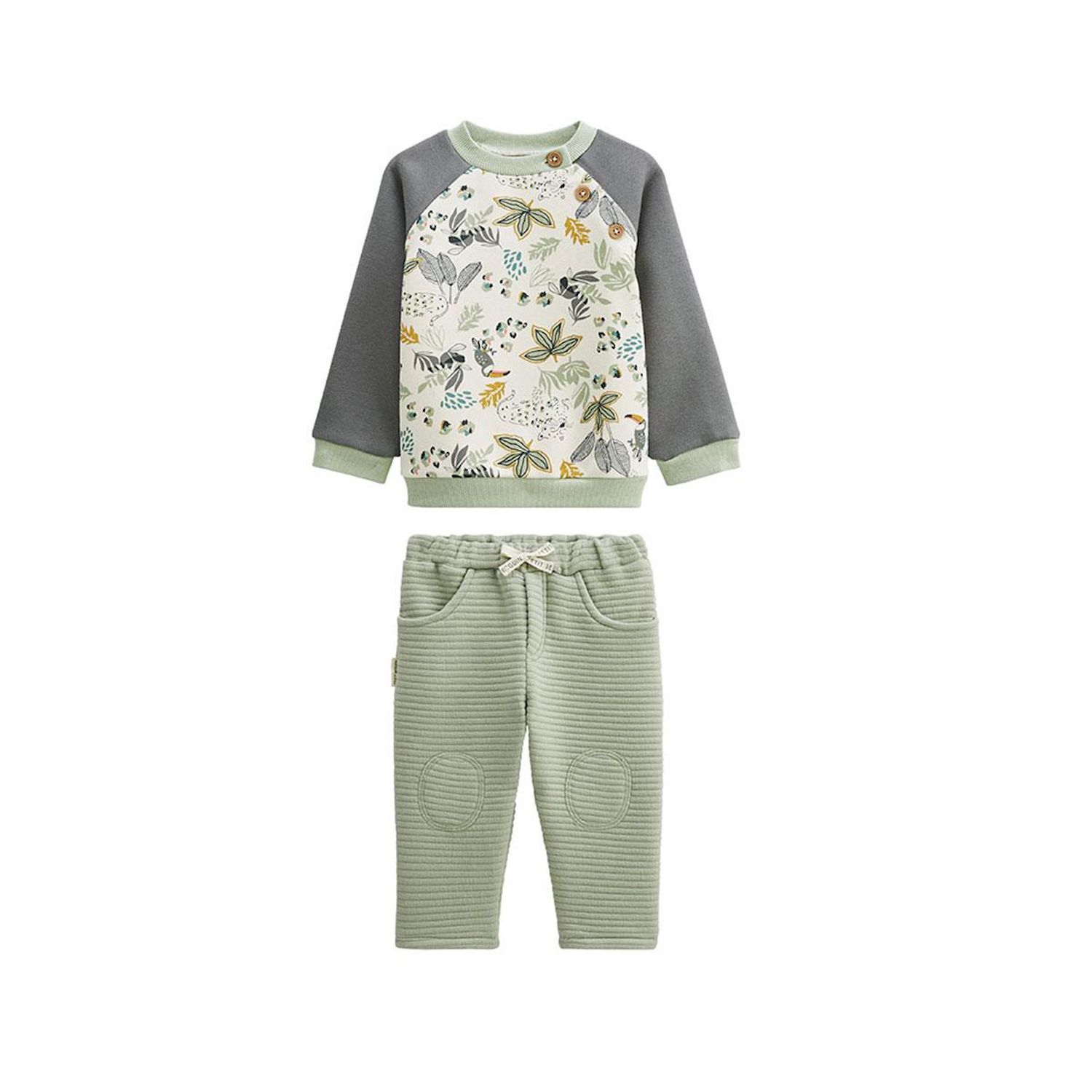 Un look tendance et douillet pour bébé ! Le sweat en molleton gratté ultra doux réchauffe avec style, tandis que le pantalon en molleton côtelée est souple et confort. Le combo parfait pour bouger, jouer et cocooner toute la journée !En molleton chaud tout douxUne matière trop chou sur le basOuverture pas 3 boutons au colLa taille élastiquée du pantalon trop pratique !Photos non contractuelles : les visuels sont fournis à titre illustratif. Les accessoires visibles ne sont pas inclus, l'offre concerne uniquement les pièces mentionnées dans le titre.