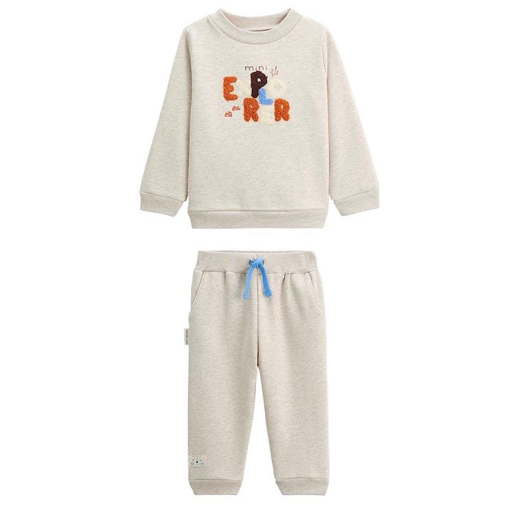 Un ensemble tout doux en molleton beige chiné, parfait pour les journées cocooning. Le patch en bouclette apporte une touche de relief et de tendresse. Confortable, pratique et stylé : un essentiel du vestiaire bébé.Ensemble en molleton chaud et tout douxAvec des poches pour faire comme les grandsPa