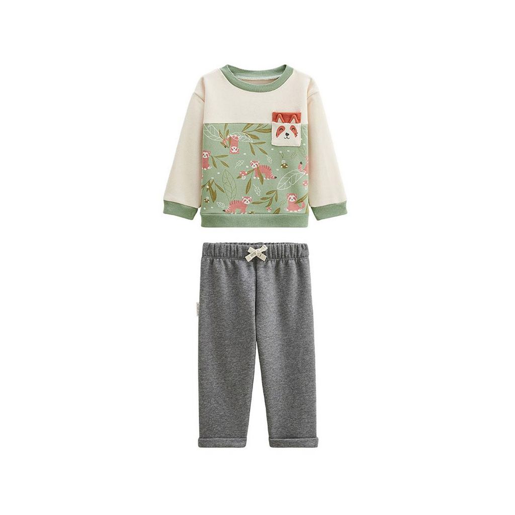 Un look trop chou pour les vadrouilles du quotidien ! Sweat coloré avec sa poche et son panda roux, sans oublier son pantalon confortable, pour mixer douceur et aventure. Le tout en molleton, pou avoir bien chaud.En molleton chaud tout douxLa taille élastiquée du pantalon trop pratique !Produit labe