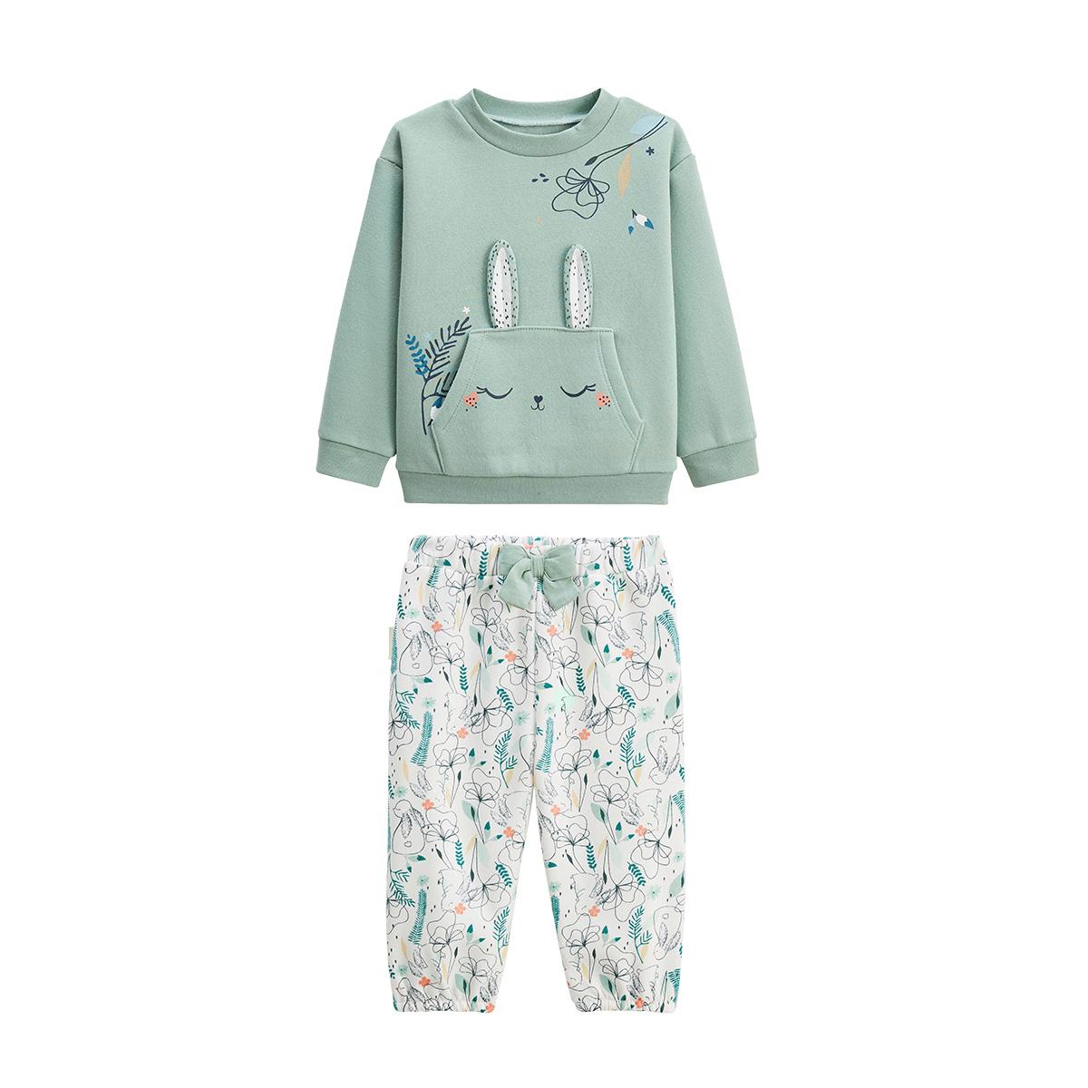 Un petit ensemble à croquer ! On adore son côté ludique avec les petites oreilles et sa poche kangourou. Cet ensemble sera le nouveau préféré de votre petit bout ! Avec des jolis motifs dessinés et son beau bleu, on ne peut résister.Produit labellisé STANDARD 100 by OEKO-TEX ® (BJ020 189402 TESTEX)Des pressions en haut du sweat et la taille élastiquée du pantalon, trop pratique !Une jolie poche kangourou avec des petites oreilles trop chouEn molleton tout doux !Photos non contractuelles : les visuels sont fournis à titre illustratif. Les accessoires visibles ne sont pas inclus, l'offre concerne uniquement les pièces mentionnées dans le titre.