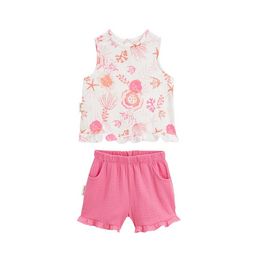 Cet ensemble en coton gaufré est l'allié parfait pour les journées d'été de votre petit bout. Une tenue simple, agréable et pratique pour des moments de jeu et de détente. On craque pour ce rose totalement canon.Une taille élastiquée du short et ses petites poches : trop pratique !Des effets broderi
