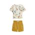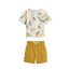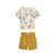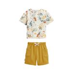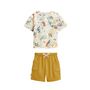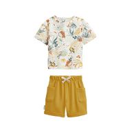 Pourquoi ne pas opter pour cet ensemble pour que votre petit bout soit trop stylé tout l'été ? Léger et confort, ce petit short couleur ocre en terry 100% coton sera la pièce maîtresse du look. Sans oublier son t-shirt en coton avec son imprimé feuillage à croquer.La taille élastiquée du short et se