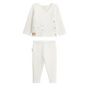 Un petit nuage de douceur pour envelopper bébé. Cet ensemble en tricot écru allie confort et style avec son gilet à ouverture croisée, et son pantalon assorti. Une tenue aussi douce que pratique, parfaite pour les premiers instants de bébé.Ouverture avec des boutons sur le coté du giletOn craque sur