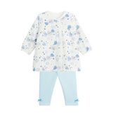 Douillet, confort et agréable, l'ensemble Luna va vous faire craquer ! Avec son ouverture complète pressionnée sur le devant, la robe facilite l'habillage de votre petit bout. Sans oublier les superbes manches bouffantes de la robe et les petits nœuds au bas du legging qui apportent une touche de st