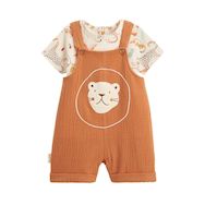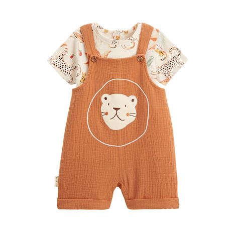 Un ensemble aussi mignon que pratique ! La salopette en coton gaufré, douce et confortable, a un adorable patch de lion qui ajoute une touche de fantaisie. Avec son t-shirt assorti, c'est le look adorable à avoir, parfait pour les journées ensoleillées. Facile à enfiler, elle permet à bébé de bouger