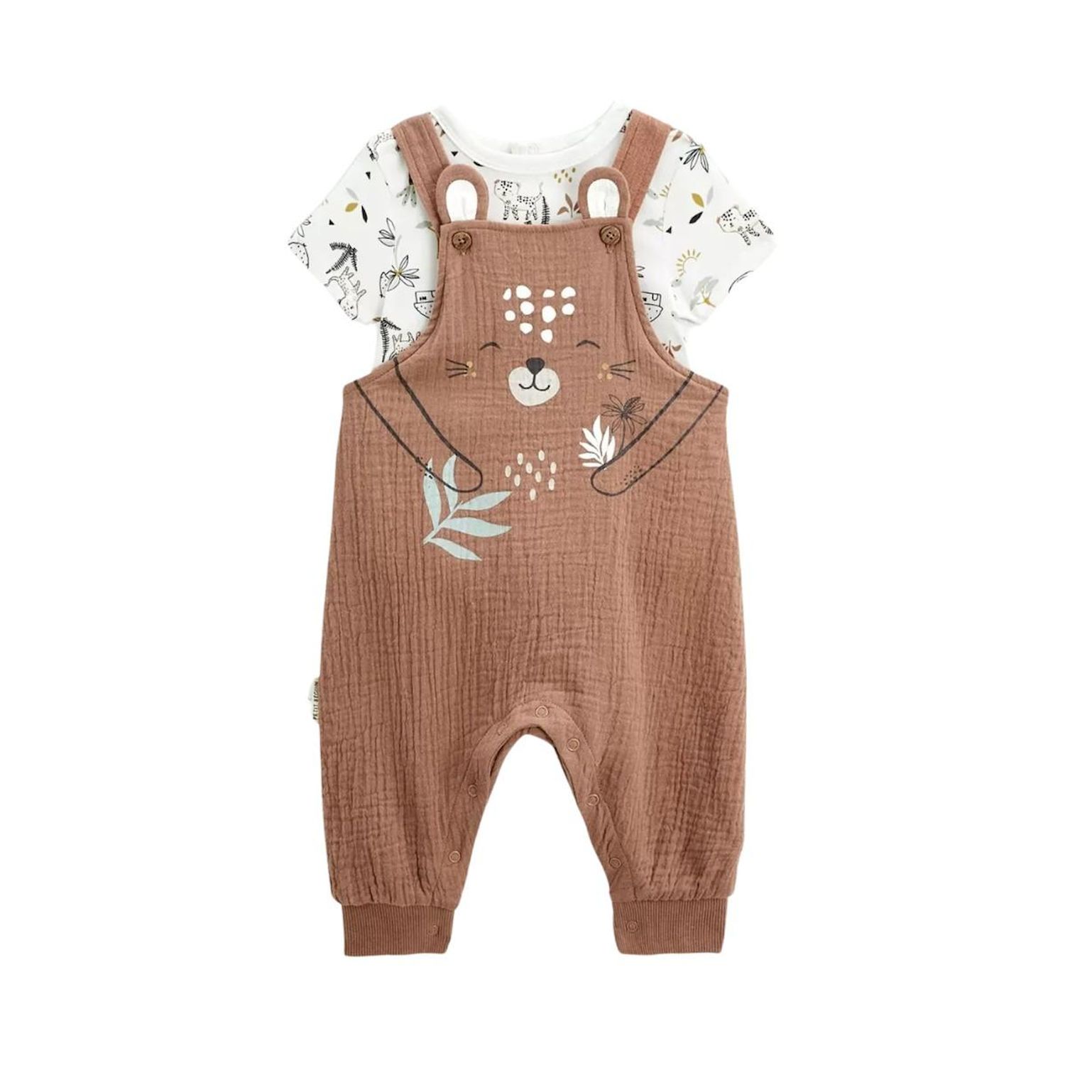 Prêt à être le plus mignon de la saison ? Avec sa superbe panthère, bébé partira à la découverte de la vie. On craque sur la salopette en coton gaufré et ses petites oreilles, accompagnée de son t-shirt en coton où un petit éléphant s'y cache. Produit labellisé STANDARD 100 by OEKO-TEX ® (BJ020 1894