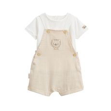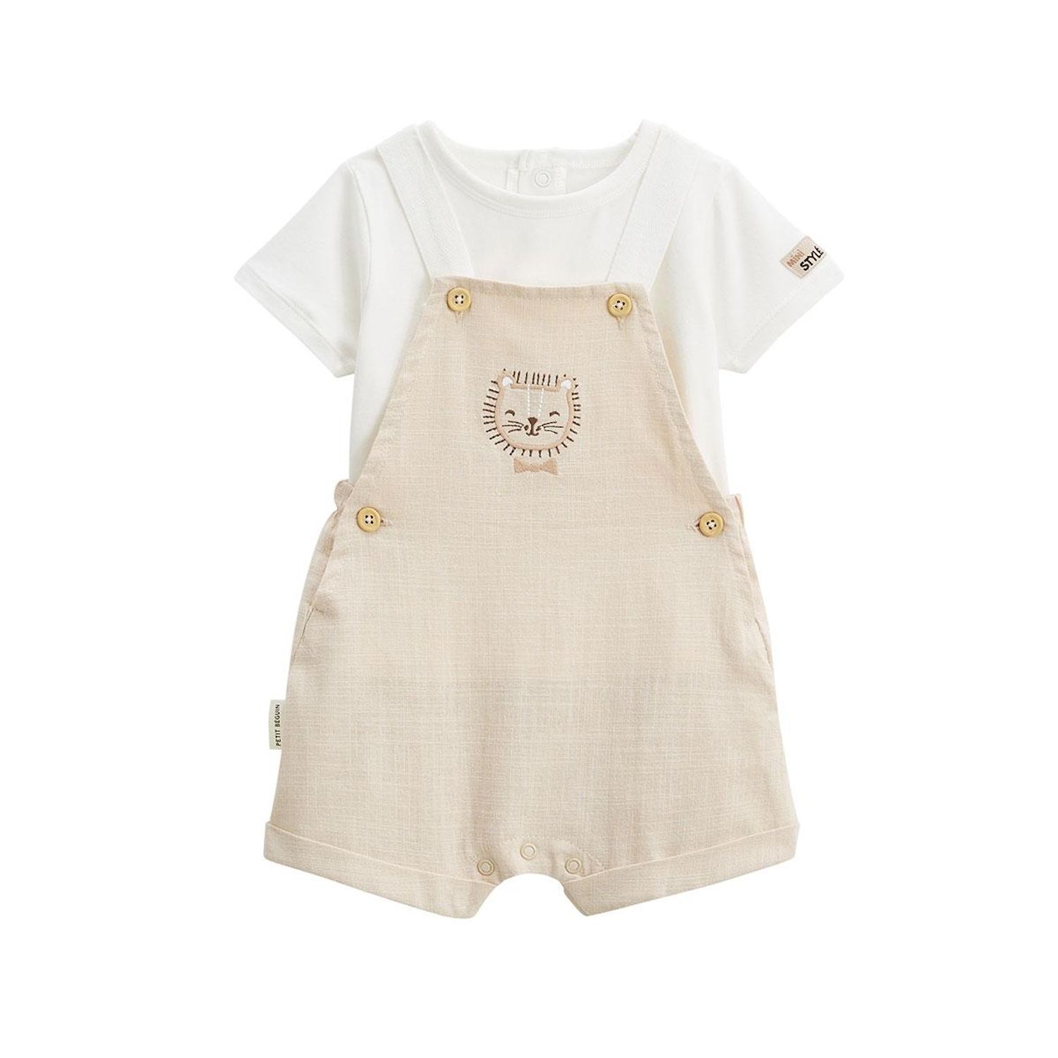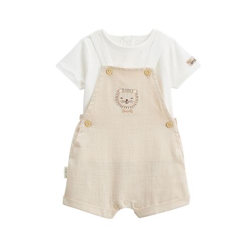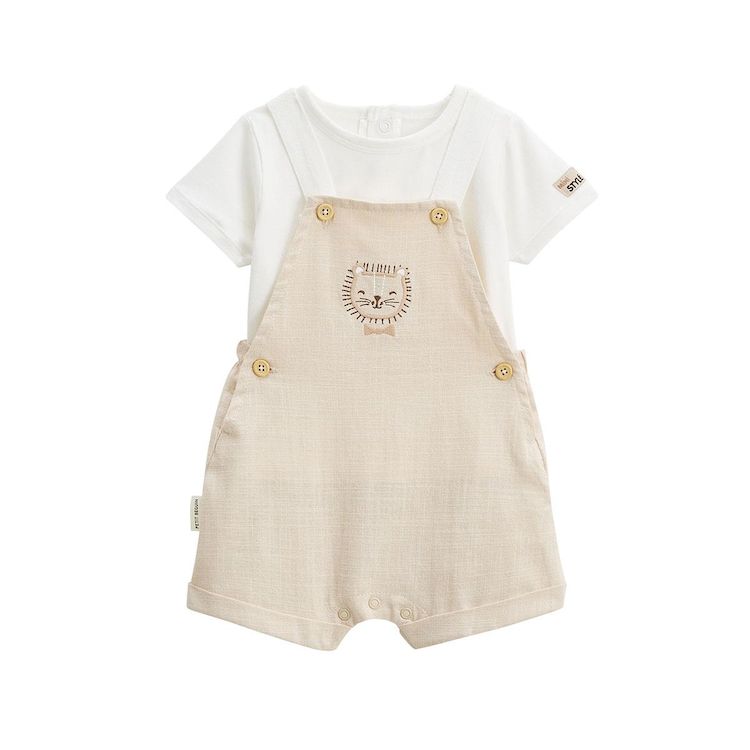 Un ensemble parfait pour les grandes occasions ! La salopette et sa teinte sable apporte une allure chic, avec son t-shirt écru qui apporte tout le confort dont bébé a besoin. On adore le petit lion posé discrètement, qui ajoute juste ce qu'il faut de fantaisie. Des pressions au dos du t-shirt pour