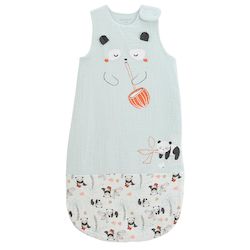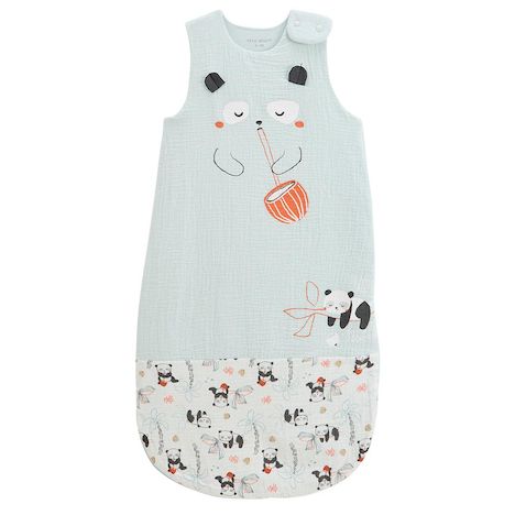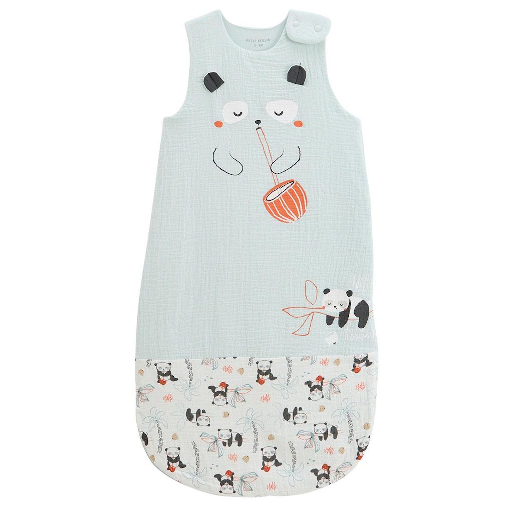 Cette gigoteuse légère en coton gaufré est idéale pour envelopper bébé sans trop couvrir. Ses tons vert d'eau et écru créent un univers tout doux et ludique. On craque pour ce petit panda trop mignon. Oreilles de panda en relief, trop mignon En coton gaufré tout doux Produit labellisé STANDARD 100 b