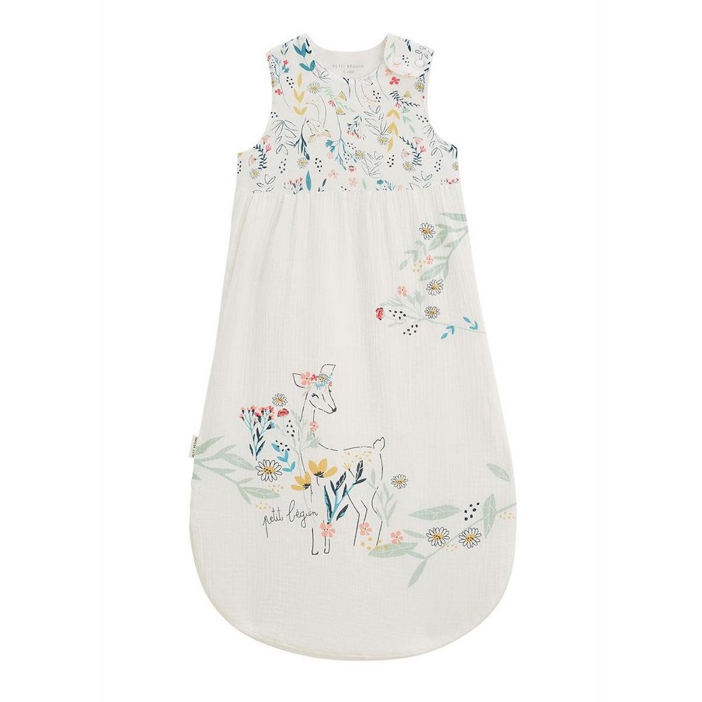 Voici la plus jolie des gigoteuses ! Son ambiance poétique emmènera bébé au pays des rêves... Craquez pour le coton gaufré et pour le sublime imprimé 'jardin'. Craquez pour la gaze de coton toute douce et son effet gaufré Cale bébé ajustable à l'intérieur jusqu'au 6/18 mois inclus Ouverture zippée s