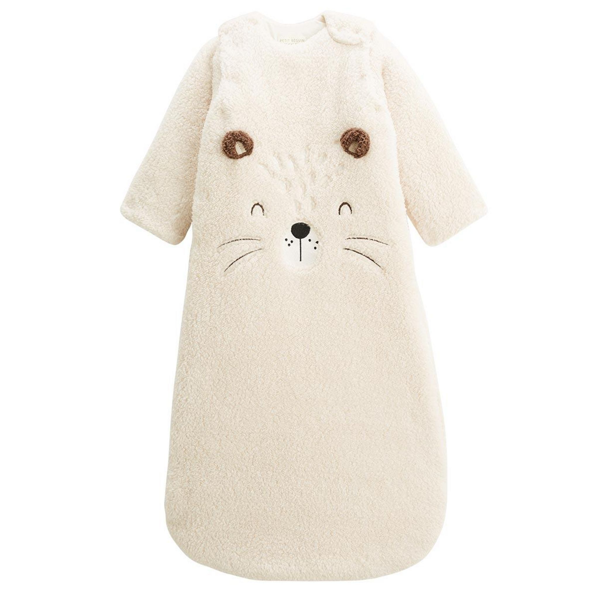 Une gigoteuse en sherpa ultra douce, pour envelopper bébé de chaleur et de tendresse. La petite tête d'ours brodée apporte une touche adorable et réconfortante. Parfaite pour des nuits douces et cosy. Produit labellisé STANDARD 100 by OEKO-TEX ®(BJ020 189402 TESTEX) Manches longues amovibles par pre