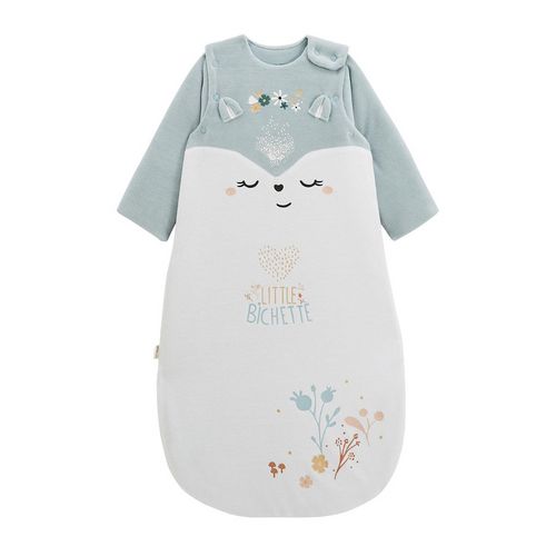 Une gigoteuse aux couleurs douces pour passer de jolies nuits. Notre petite bichette veille à ce que votre petit bout se sente bien et à l'aise dans cette gigoteuse à manches en velours très douillet.Produit labellisé STANDARD 100 by OEKO-TEX ® (BJ020 189402 TESTEX)Manches longues amovibles par pres