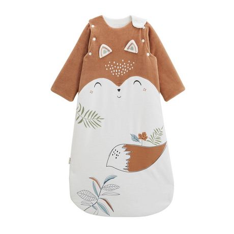 La pièce indispensable pour une bonne nuit de sommeil est de retour ! Avec ses manches amovibles, elle permet de s'ajuster selon la température. Dans de jolis tons écrus et camel, un petit renard apporte une touche ludique à cette belle gigoteuse. Produit labellisé STANDARD 100 by OEKO-TEX ®(BJ020 1