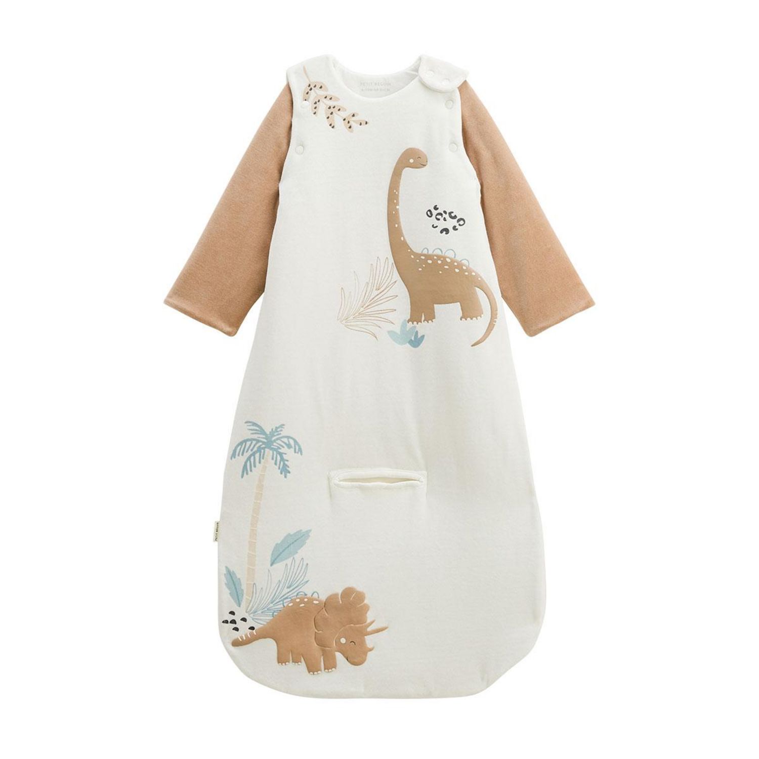 Une gigoteuse en velours ultra douce, dans des tons écru et café au lait. Elle est dotée de manches amovibles et d'une ouverture pour harnais, parfaite pour la poussette ou le siège auto. Le petit plus ? Le dino en relief, amusant à toucher !Produit labellisé STANDARD 100 by OEKO-TEX ® (SHKO 039388