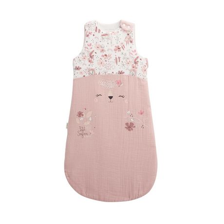 Comment ne pas craquer devant cette jolie gigoteuse aux tons doux avec ces couleurs rosés ? En gaze de coton, cette gigoteuse sera la pièce parfaite pour la mi-saison afin de garder au chaud bébé, sans qu'il n'ait trop chaud non plus ! Cale bébé ajustable à l'intérieur jusqu'au 6/18 mois inclus Ouve