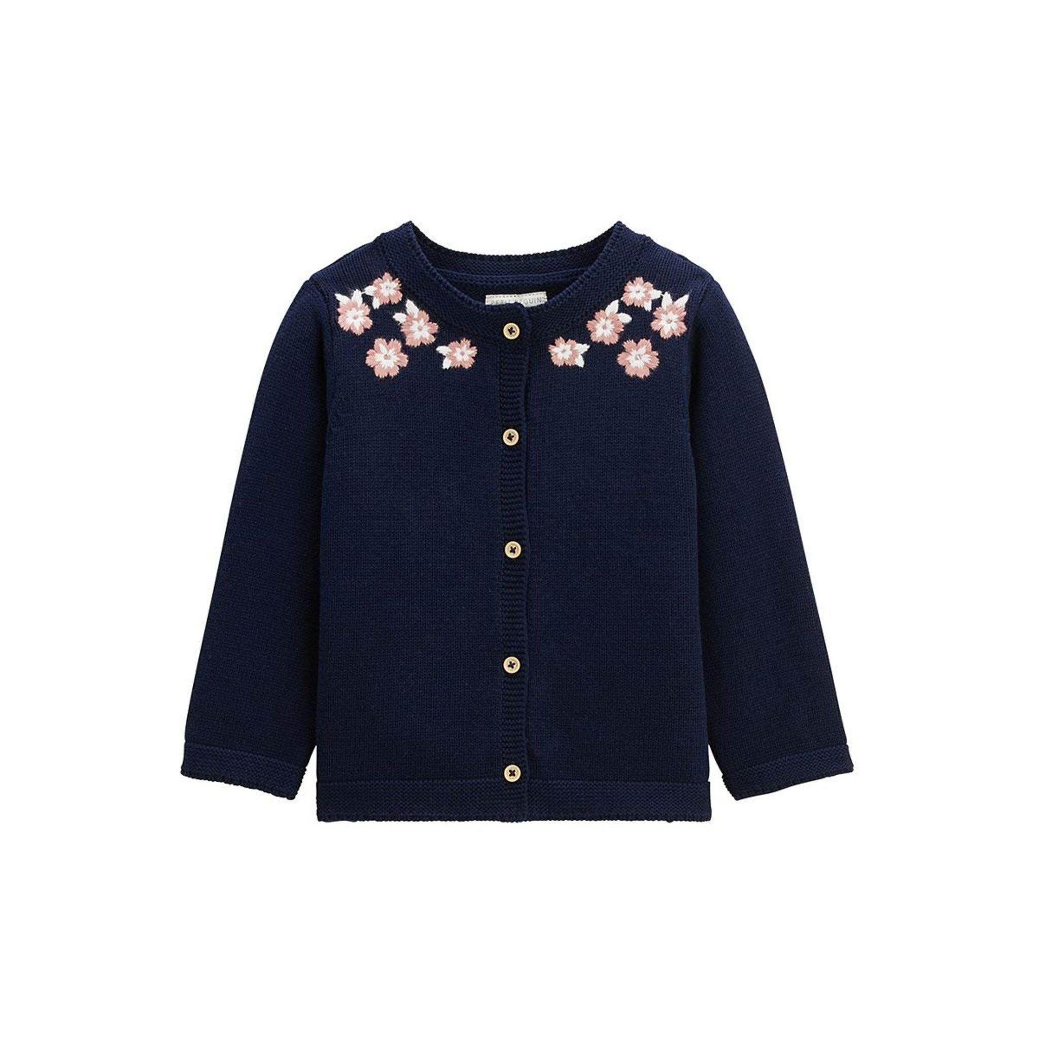 Un petit gilet tout mignon en tricot tout doux, avec de jolies fleurs brodées autour du col. Facile à enfiler, il réchauffe les tenues avec une touche pleine de tendresse.De la broderie pour un look chicDes boutons effet bois trop mignonsPhotos non contractuelles : les visuels sont fournis à titre i