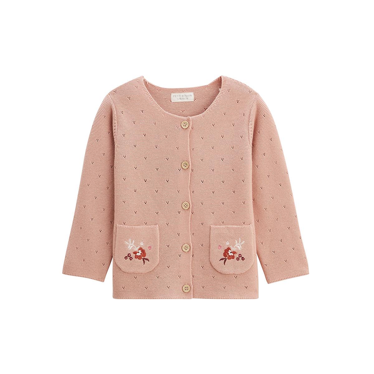 Un petit gilet plein de charme, en tricot doux et ajouré façon pointelle. Sa teinte rose tendre et sa broderie discrète en font une pièce aussi élégante que confortable. Parfait pour réchauffer les tenues avec douceur.De la broderie pour un look chicDes petites poches trop mignonnesOn craque pour l'