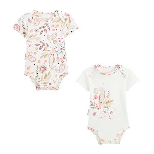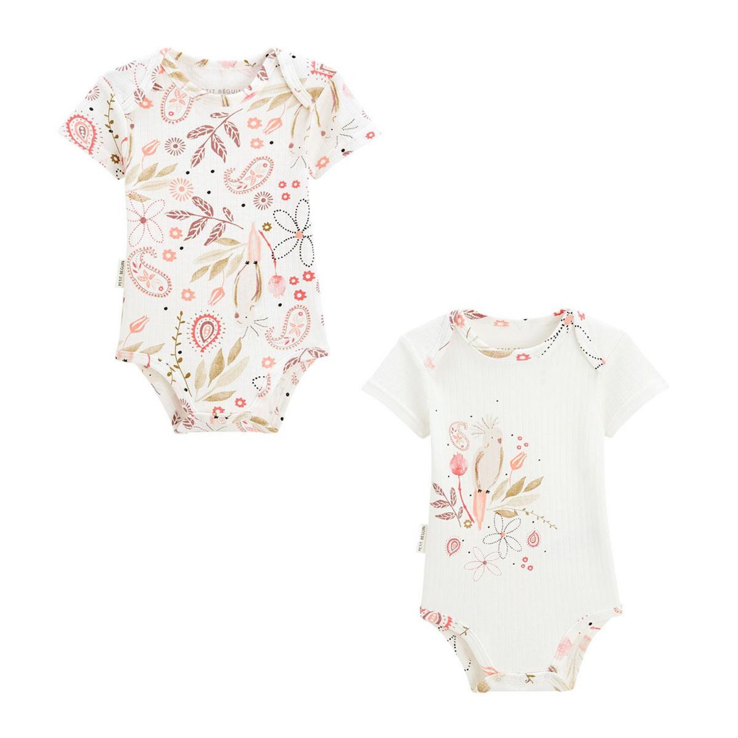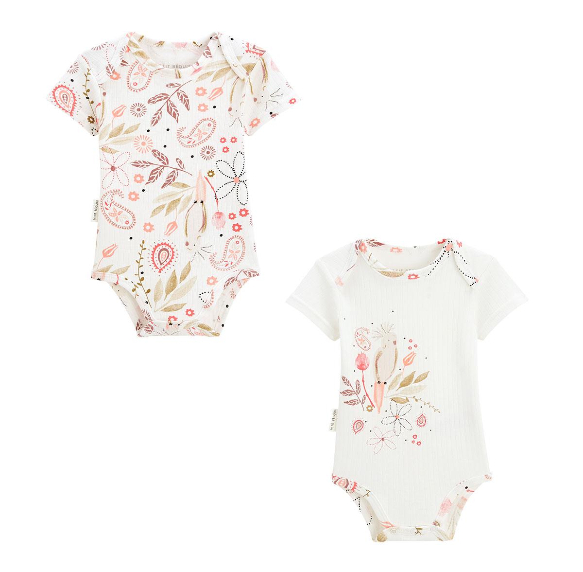 Voici un joli duo de bodies écru en coton côtelé pour un effet assuré ! Nos stylistes y ont aussi ajouté des motifs, et de belles touches de corail et couleur grenadine pour vous emmener directement sous le soleil. Col US pour faciliter le passage de la tête Ouverture par pressions à l'entrejambe Un