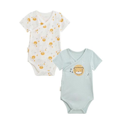 Deux essentiels pensés pour les premiers mois. Grâce à leur ouverture croisée sur le devant, ils s'enfilent facilement sans passer par la tête, pour plus de confort lors de l'habillage. Version imprimée ou unie avec petit lion, ce duo allie douceur, praticité et style tendre. Ouverture croisée pour