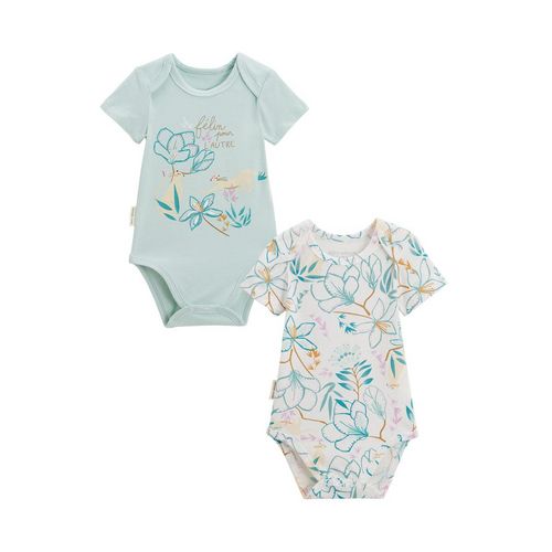 On craque pour ce lot de deux bodies à l'imprimé floral à croquer, mais surtout on adore sa douce couleur aqua ! Produit labellisé STANDARD 100 by OEKO-TEX ®(BJ020 189402 TESTEX) Col US pour faciliter le passage de la tête Ouverture par pressions à l'entrejambe