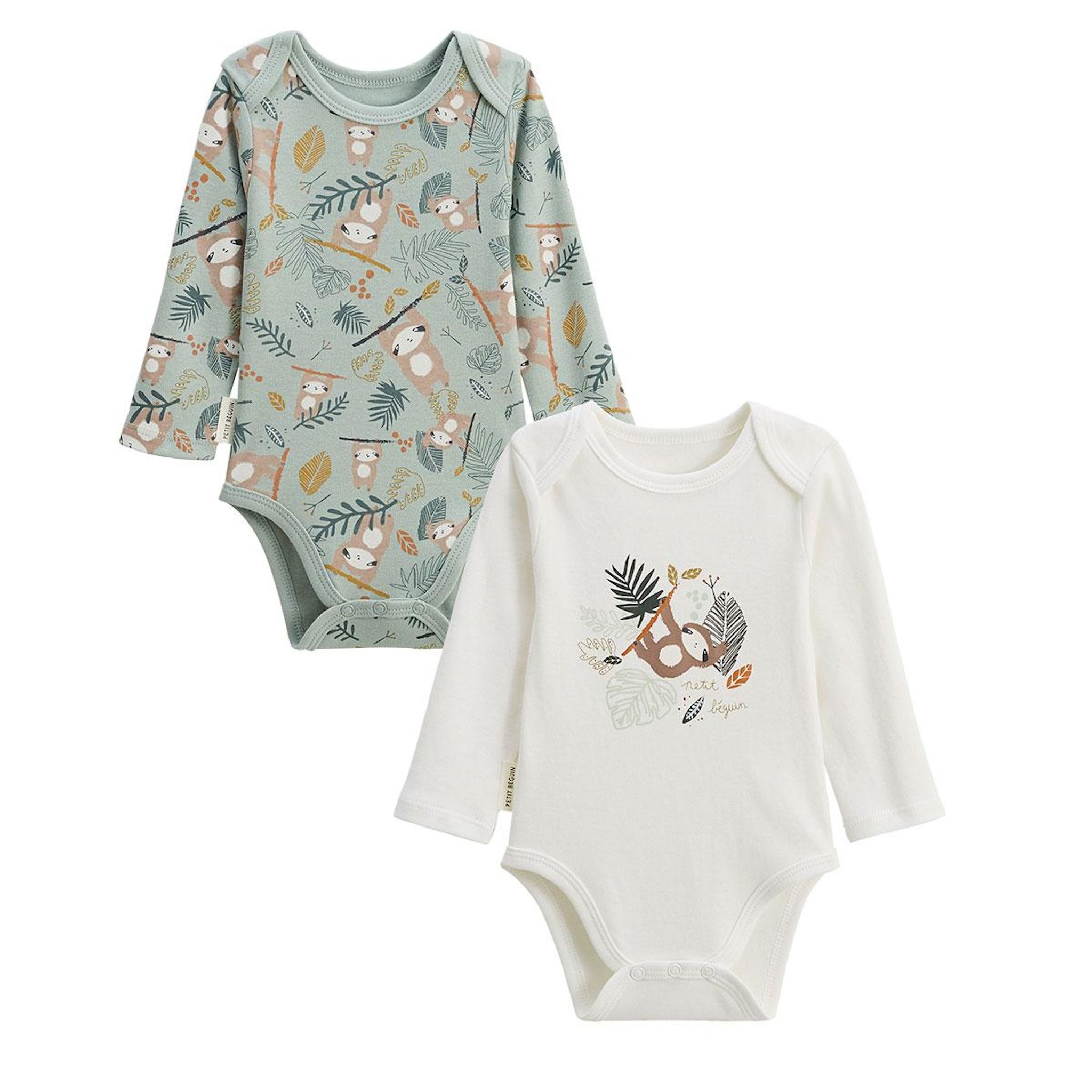 Un duo tout doux pour les premières aventures de bébé. Ces deux bodies, l'un vert, l'autre écru, ont un petit paresseux trop mignon, parfait pour jouer à cache-cache entre les câlins.Col US pour faciliter le passage de la têteOuverture par pressions à l'entrejambeProduit labellisé STANDARD 100 by OE