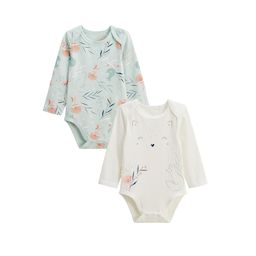 Un duo tout doux dans les tons bleu céladon et écru, avec un petit renard malicieux en vedette. Confortables et faciles à enfiler, ces bodies manches longues accompagnent bébé dans toutes ses aventures.Produit labellisé STANDARD 100 by OEKO-TEX ® (BJ020 189402 TESTEX)Col US pour faciliter le passage