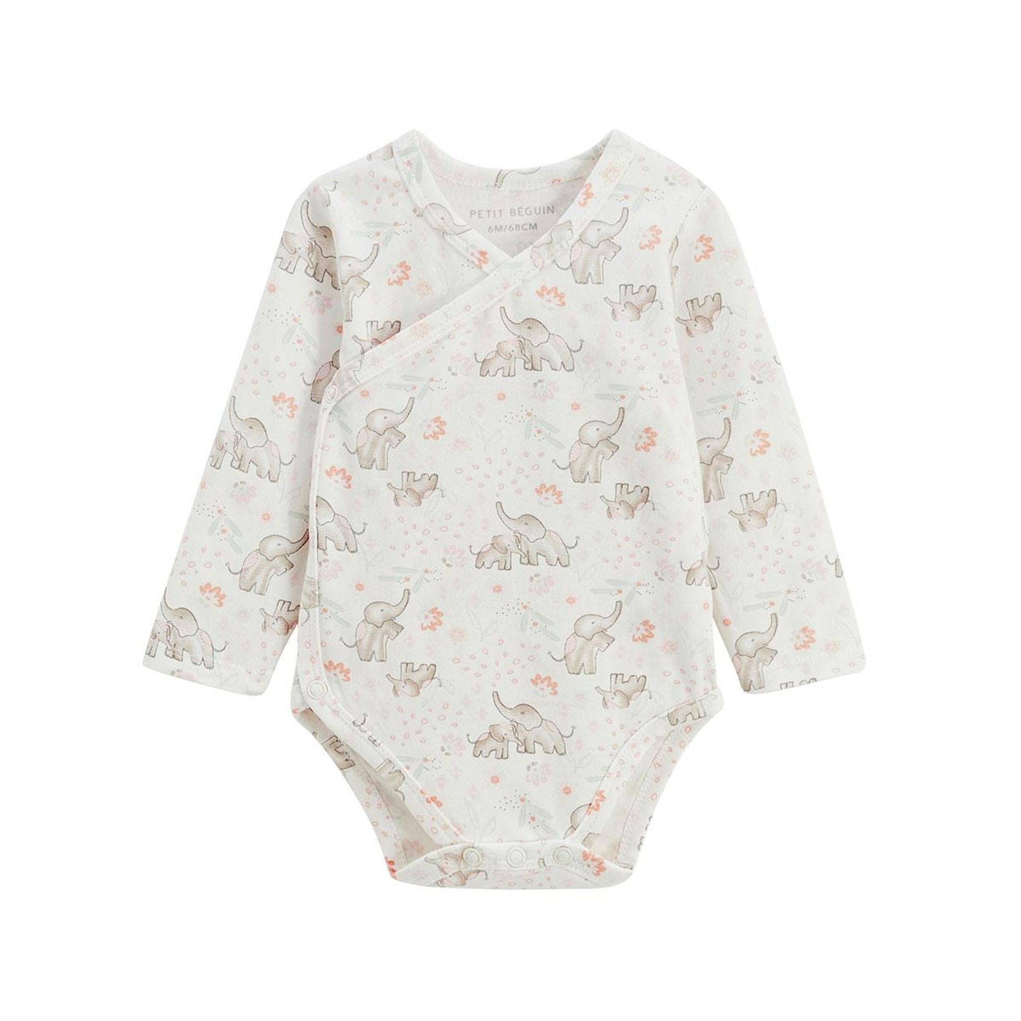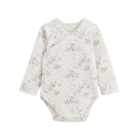Deux bodies indispensables pour la naissance ! Grâce à leur ouverture croisée, ils s'enfilent facilement sans passer par la tête, parfait pour les tout-petits. Tout doux, confortables et tellement mignons avec leurs petits détails tendres et ce joli éléphant, ils accompagneront bébé au quotidien en