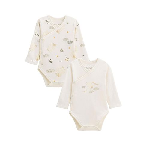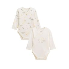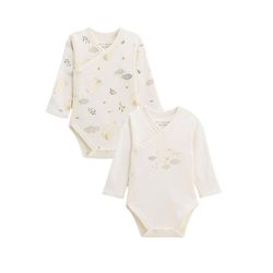 Deux bodies tout doux en coton, parfaits pour les premiers jours. Leur ouverture croisée facilite l'habillage et les jolis motifs nuages apportent une touche de tendresse. Un essentiel pour la valise maternité.Ouverture croisée pour faciliter l'habillageOuverture par pressions à l'entrejambeContient