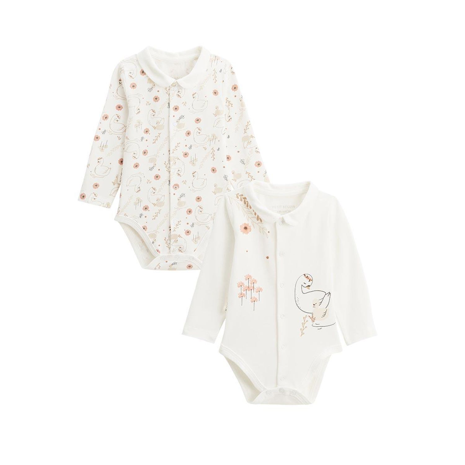 Un lot de 2 bodies craquants pour habiller bébé avec style et confort. Tout écrus, ils ont de jolis imprimés pleins de tendresse et d'un col claudine raffiné. Leur ouverture sur tout le devant facilite l'habillage et le change au quotidien.Ouverture sur le devant pour faciliter l'habillageOuverture