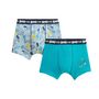 Du bleu et du bleu, des couleurs vibrantes pour cet été. On craque pour le lot de 2 boxers canons et ses petits dinos.Photos non contractuelles : les visuels sont fournis à titre illustratif. Les accessoires visibles ne sont pas inclus, l'offre concerne uniquement les pièces mentionnées dans le titr